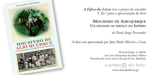 Maio 31, 2010 Apresentação de "Mouzinho de Albuquerque" de Paulo Jorge Fernandes. Dia 8 de Junho, às 18h30, no Museu Militar Tags:aesferadoslivrosdivulgação editorial link do post comentar favorito