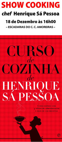 Dezembro 16, 2010 Show Cooking com chef Henrique Sá Pessoa. 18 de Dezembro, às 16h, Escadarias do C. C. Amoreiras Tags:aesferadoslivrosdivulgação editorial link do post comentar favorito