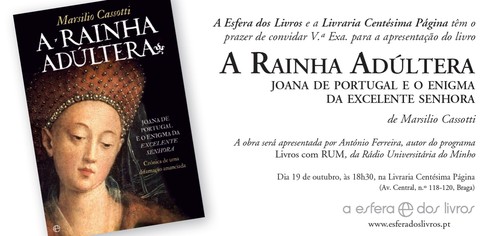 Outubro 17, 2012 Apresentação de "Rainha Adúltera" de Marsilio Cassotti, dia 19 de Outubro, 18h30, na Livraria Centésima Página, Braga Tags:aesferadoslivroslançamento link do post comentar favorito
